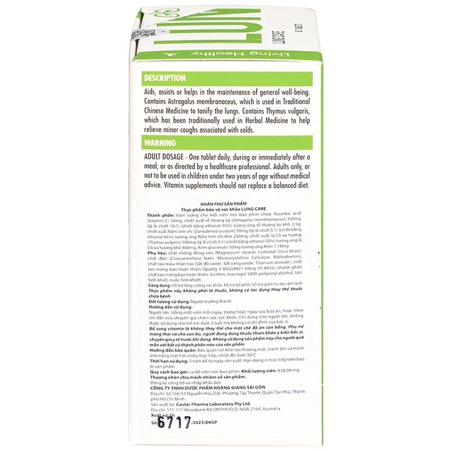 Viên uống bổ phế Living Healthy Lung Care được nghiên cứu sản xuất bởi nhà máy Star Combo Pharma. Star Combo Pharma là nhà sản xuất và phân phối hàng đầu các sản phẩm chăm sóc sức khỏe và sắc đẹp tự nhiên cao cấp đạt các tiêu chuẩn của Úc được sản xuất tại Australia,