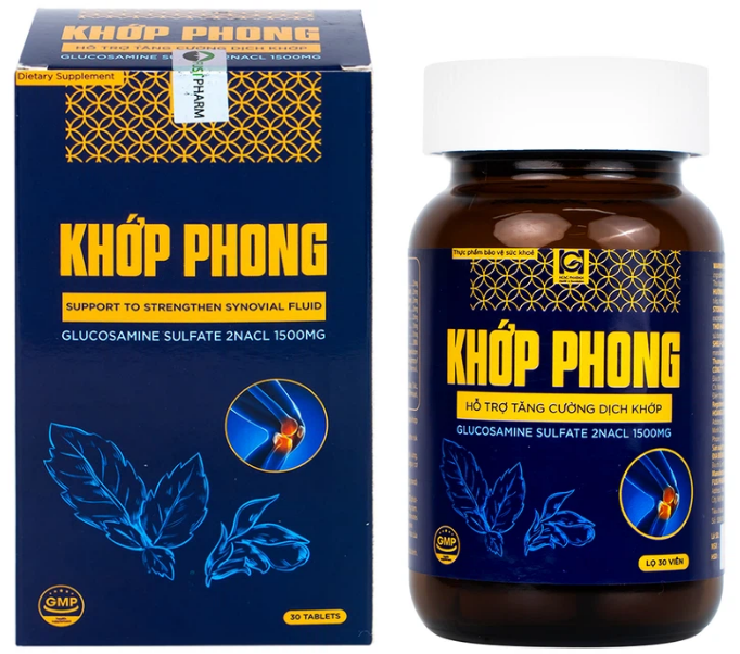 Viên uống Khớp Phong chứa thành phần chính Glucosamin sulfate 2NaCl hàm lượng lên tới 1500mg kích thích sản xuất proteoglycan, giúp sụn khớp khỏe mạnh và đàn hồi.